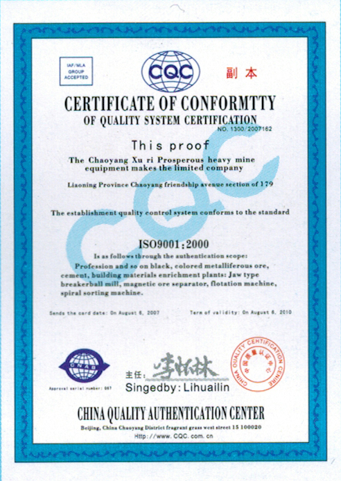 質(zhì)量管理體系證書(shū)